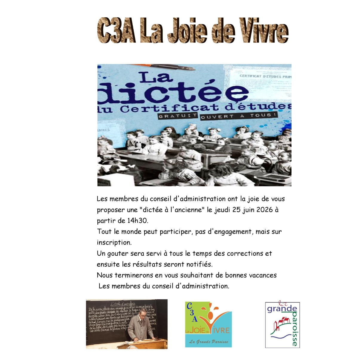 C3A la Joie d Vivre vous propose une"dicté e à l'ancienne"